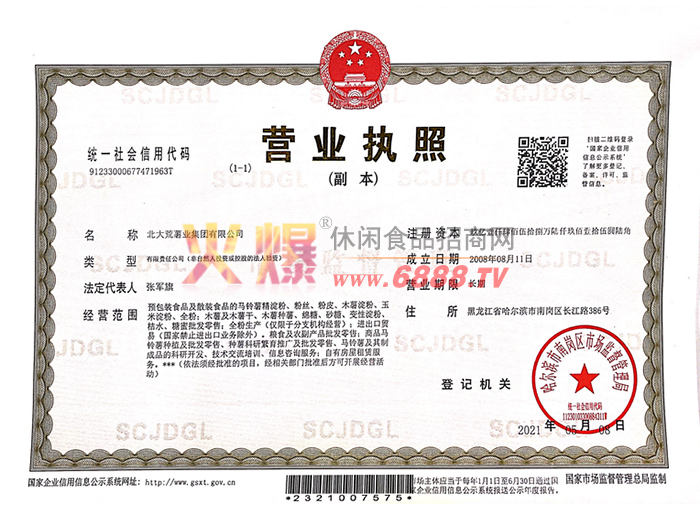 預(yù)包裝食品及散裝食品的馬鈴薯精淀粉、粉絲、粉皮、木薯淀粉、玉米淀粉、全粉;木薯及木薯干、木薯種薯、綿糖、砂糖、變性淀粉、桔水、糖蜜批發(fā)零售;全粉生產(chǎn)(僅限于分支機(jī)構(gòu)經(jīng)營(yíng));進(jìn)出口貿(mào)易(國(guó)家禁止進(jìn)出口業(yè)務(wù)除外)。糧食及農(nóng)副產(chǎn)品批發(fā)零售;商品馬鈴薯種植及批發(fā)零售、種薯科研繁育推廣及批發(fā)零售、馬鈴薯及其制成品的科研開(kāi)發(fā)、技術(shù)交流培訓(xùn)、信息咨詢服務(wù);自有房屋租賃服務(wù)。***