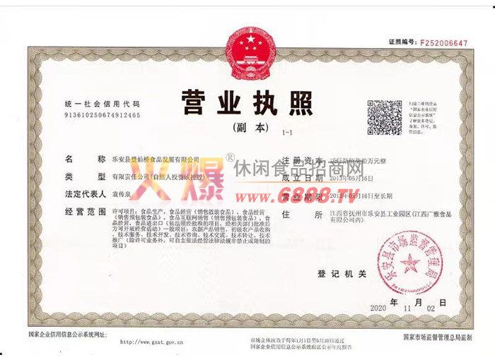 - 公司名稱(chēng) 樂(lè)安縣登仙橋食品發(fā)展有限公司 企業(yè)類(lèi)型 有限責(zé)任公司(自然人投資或控股)