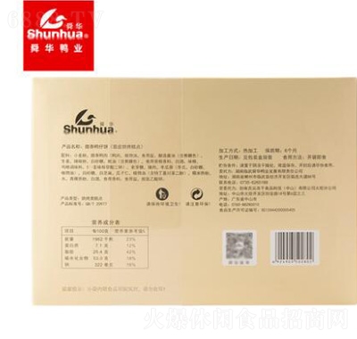 在加工版塊,公司建成現(xiàn)代化加工廠5座,其中舜華臨武鴨屠宰加工廠、舜華臨武鴨制品加工廠、舜華魚制品加工廠、舜華湘菜加工廠、舜華山茶油加工廠各1座。自主研發(fā)的200余款“舜華”系列產(chǎn)品憑借獨(dú)特的風(fēng)味和好的品質(zhì),深受廣大消費(fèi)者青睞。