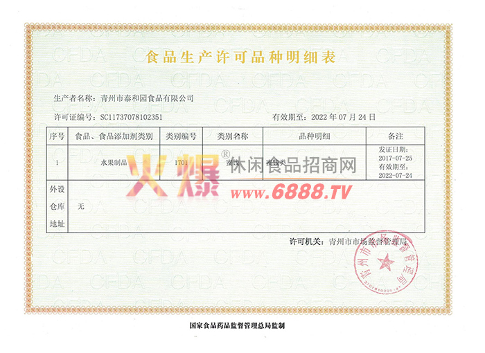 蜜餞生產(chǎn)、銷(xiāo)售(有效期限以許可證為準(zhǔn))(依法須經(jīng)批準(zhǔn)的項(xiàng)目,經(jīng)相關(guān)部門(mén)批準(zhǔn)后方可開(kāi)展經(jīng)營(yíng)活動(dòng))。